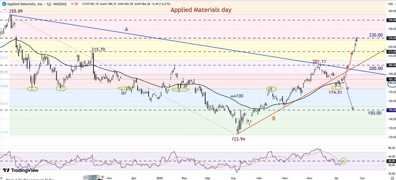 В четверг, после закрытия американской сессии выйдет отчет от Applied Materials (AMAT) — мирового лидера в области материаловедения для производства передовых полупроводниковых микросхем, таких как DRAM. Компания работает в 19 странах и насчитывает более 30 тыс. сотрудников. Она является ключевым игроком на рынке оборудования для производства полупроводниковых пластин (WFE), и дисплеев. Ее технологии: система травления Sym3 Magnum и система обнаружения дефектов eBeam, дают преимущество на рынках WFE и литейного производства. Компания поддерживает производителей чипов, создающих сложные 3D-системы и системы ИИ, что обеспечивает ей стабильный рост. В 1-м квартале 2025 г Applied Materials сообщила о выручке в размере $ 7,1 млрд., что на 7% больше, чем в предыдущем году, с прибылью на акцию в размере $ 2,39. Хотя выручка немного не дотянула до прогнозов аналитиков, рост остается сильным. Applied Materials имеет высокую операционную рентабельность и возвращает свободный денежный поток акционерам через дивиденды и выкуп акций. Аналитики считают бумаги компании недооцененными и прогнозируют рост прибыли на 10% в этом году до $ 9,49 на акцию, с дальнейшим ростом в 2026 и 2027 годах…