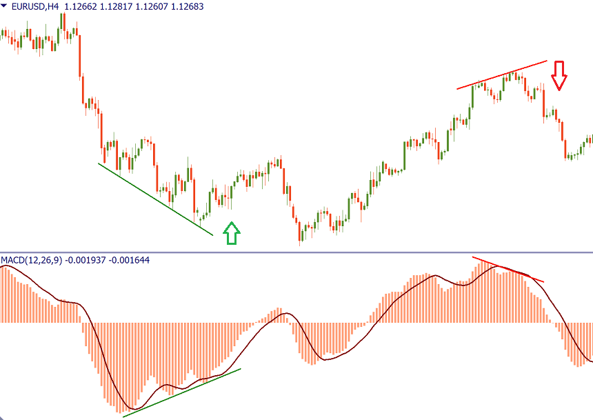 MACD — скользящая средняя конвергенции/дивергенции. Показывает связь между двумя экспоненциальными скользящими средними, с ее помощью измеряют силу, направление, импульс и продолжительность тренда. Используется при принятии решения о покупке или продаже.